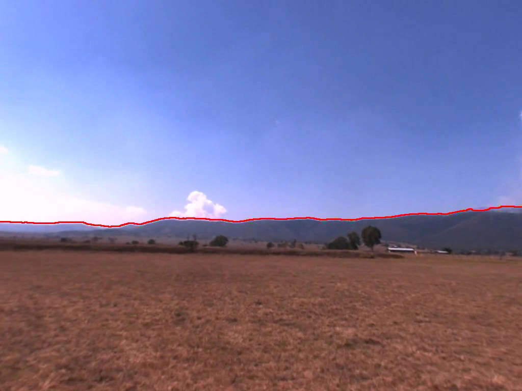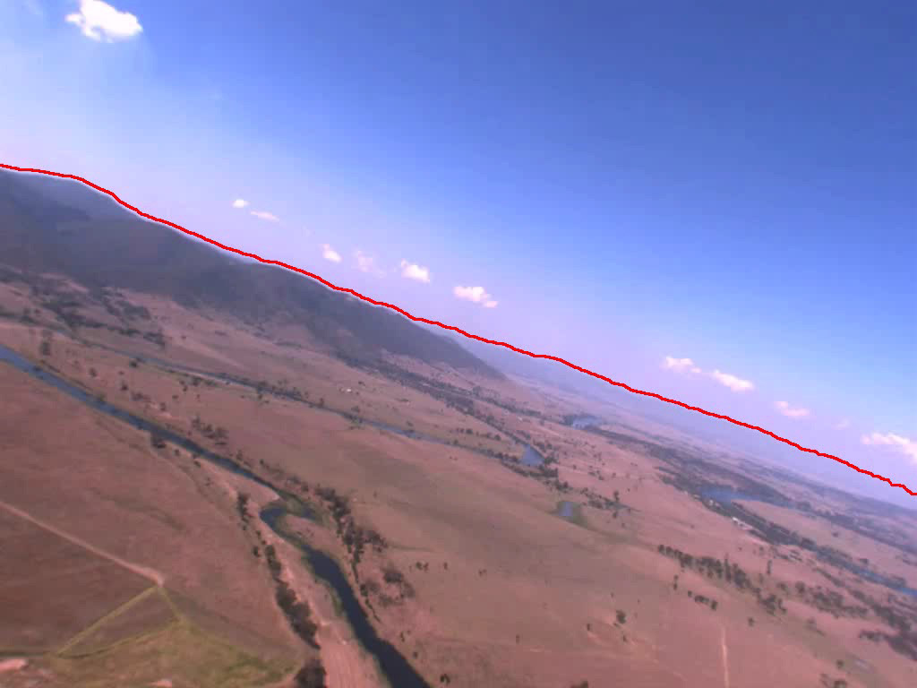The following figures show the results of the horizon detection algorithm. These images can present difficult for past approaches as in most the images the horizon is not strongly defined and the sky and ground regions of the image display similar colour and texture properties.