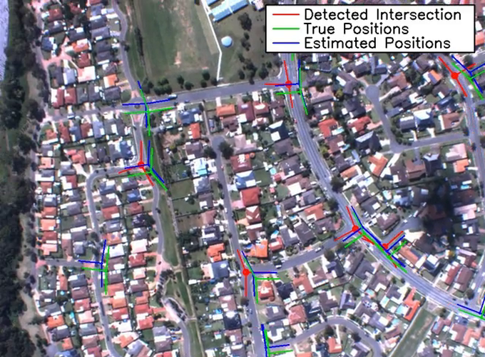 Higher level features such as road intersections or junctions have been selected to be investigated as a navigation feature in this research project. Road intersections are very common, stable, and obvious landmark in urban areas and are readily mapping in GIS databases. The intersection road branches provide very useful data association information and the center of the intersection provides a discrete point feature.